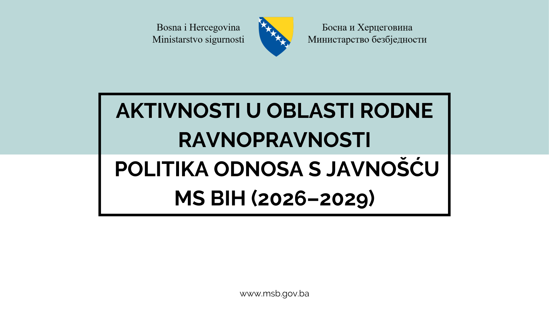 Ministarstvo sigurnosti Bosne i Hercegovine razvilo je Politiku odnosa s javnošću koja definiše savremeni, transparentan i inkluzivan pristup javnom informisanju. Politika predviđa sistemsku primjenu rodno osjetljivog, nediskriminatornog i profesionalnog jezika u svim eksternim publikacijama i komunikacijskim aktivnostima.